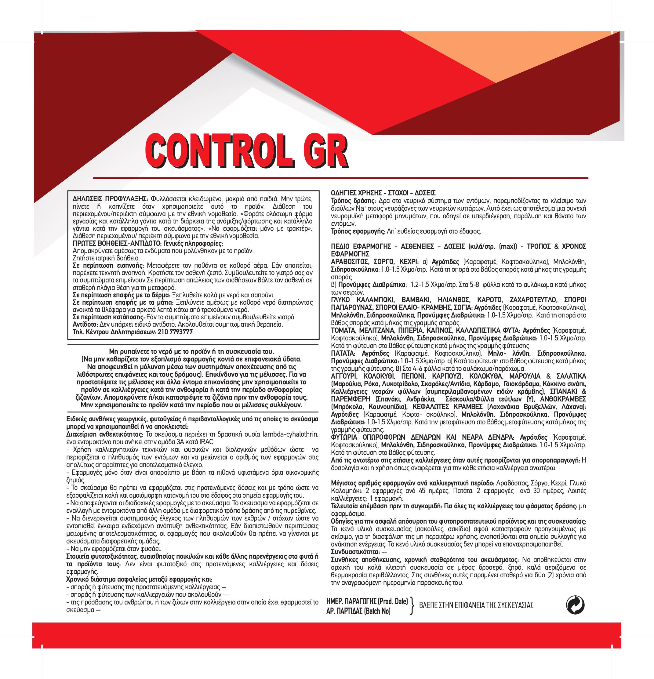 Πυρεθρινοειδές εντομοκτόνο, ευρέως φάσματος, δρα διά επαφής και δια στομάχου με προληπτική και κατασταλτική δράση, για τον έλεγχο μυζητικών