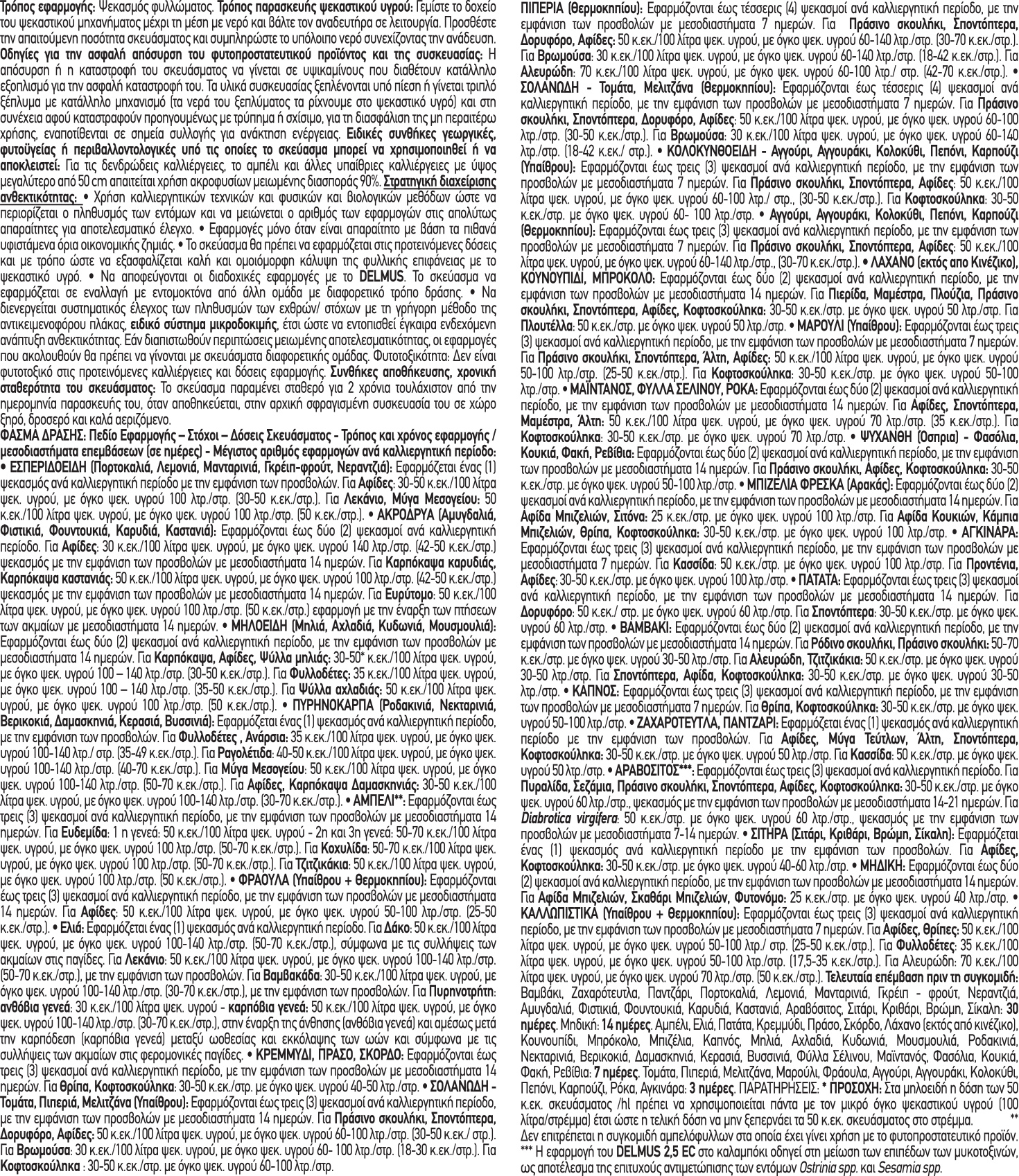 Υ: Για Πράσινο σκουλήκι, Σποντόπτερα, Δορυφόρο, Αφίδες: 50 κ.εκ/100 λτ , για Βρωμούσα : 30 κ.ε.κ/100 λτ.