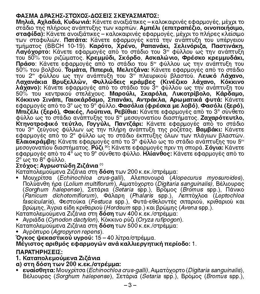 Παρατηρήσεις: 1) – Καταπολεμούμενα Ζιζάνια στη δόση των 200 κ.εκ./στρέμμα: