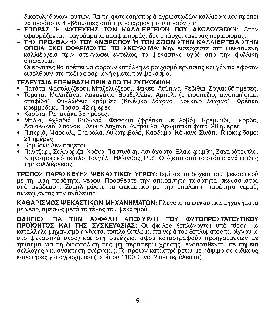 Δεν προκαλεί φυτοτοξικότητα, εφόσον χρησιμοποιείται σύμφωνα με τα οριζόμενα στην ετικέτα.