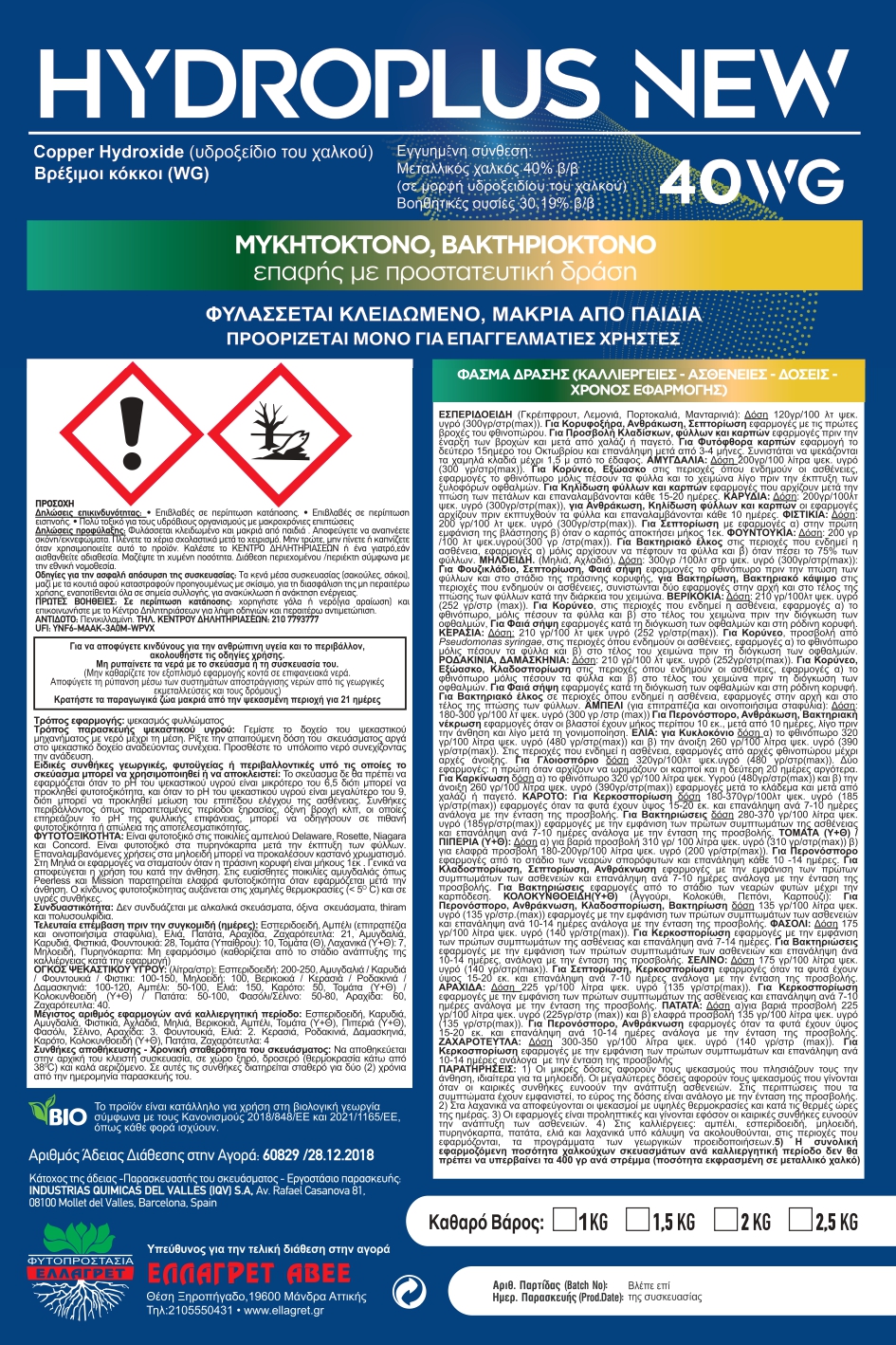 Μεταλλικός χαλκός 40%  (β/β) σε μορφή υδροξειδίου του χαλκού