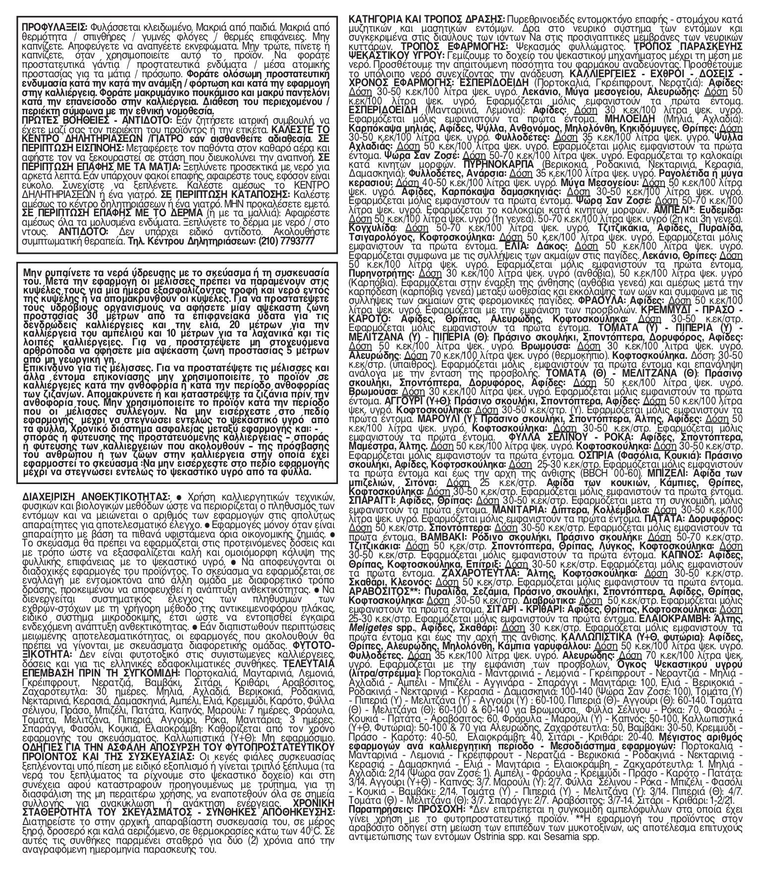 Σποντόπτερα: -/100 όγκ ψεκ υγρού:  60 κ.ε.κ/στρ: 30- 50