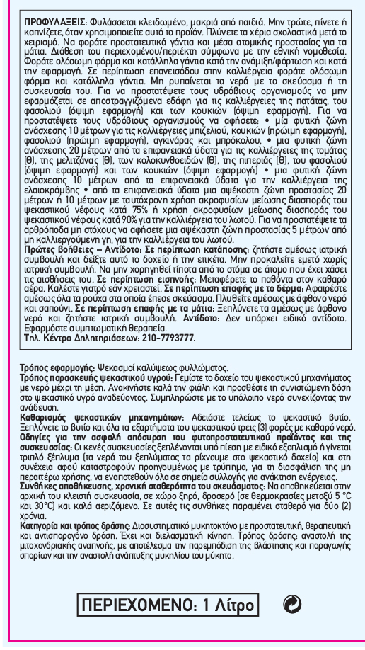 2. Nα μην χρησιμοποιείται σε καλλιέργεια τομάτας υπό κάλυψη, όταν επικρατούν συνθήκες υπερβολικά υψηλής σχετικής υγρασίας (>90%) ή/και υψηλών θερμοκρασιών (>30οC).