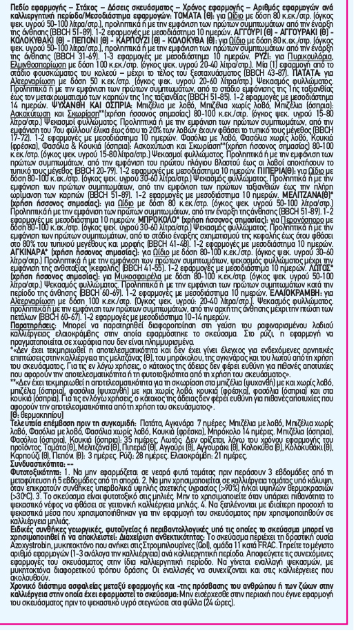 **«Δεν έχει τεκμηριωθεί η αποτελεσματικότητα για τη σκωρίαση στα μπιζέλια (ψυχανθή) με και χωρίς λοβό, μπιζέλια (όσπρια), φασόλια (ψυχανθή) με και χωρίς λοβό, κουκιά (φρέσκα), φασόλια (όσπρια) και στα κουκιά (όσπρια). Για τις εν λόγω χρήσεις, ο κάτοχος της άδειας δεν φέρει ευθύνη για πιθανές αποτυχίες που αφορούν την αποτελεσματικότητα από τη χρήση του σκευάσματος».